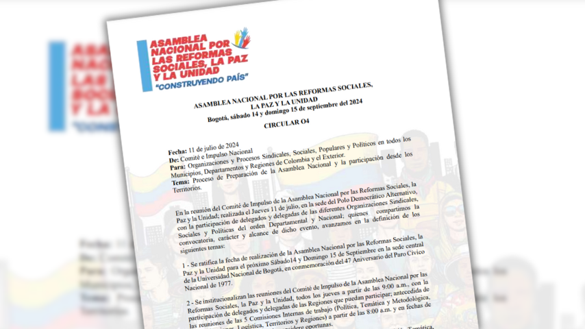 Coordinadora Nal. Cambio CIRCULAR # 4 - ASAMBLEA NACIONAL POR LAS REFORMAS SOCIALES, LA PAZ Y LA UNIDAD Lee más: CIRCULAR # 4 - ASAMBLEA NACIONAL POR LAS REFORMAS SOCIALES, LA PAZ Y LA UNIDAD