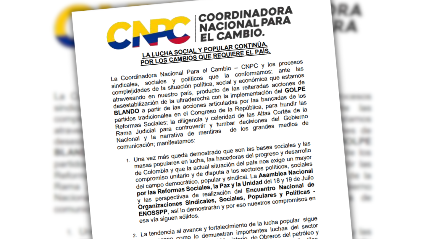 Coordinadora Nal. Cambio La lucha social y popular continúa por los cambios que requiere el país Lee más: La lucha social y popular continúa por los cambios que requiere el país