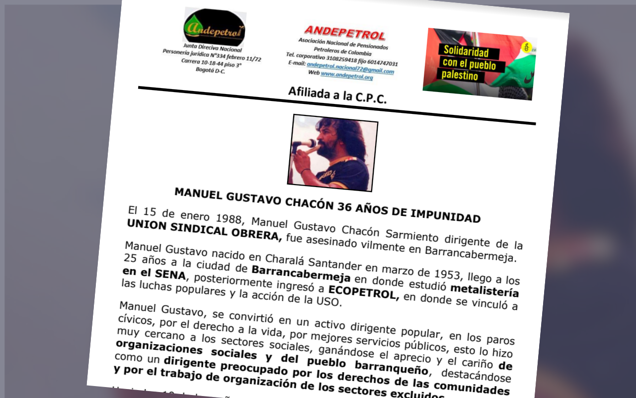 boletines ANDEPETROL RECHAZA ENERGICAMENTE LA PERSECUSIÓN EN CONTRA DE GREGORIO MEJIA, COMPAÑERO DIRIGENTE SINDICAL DE LA USO SUBDIRECTIVA DE BOGOTA